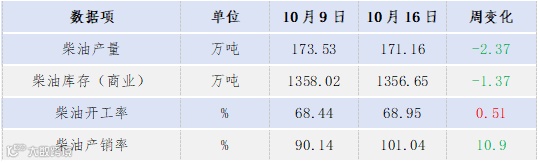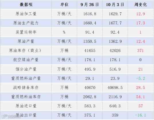 (5)【原油供应】10月17日,美国石油和天然气钻机总数增加1座,至548座。