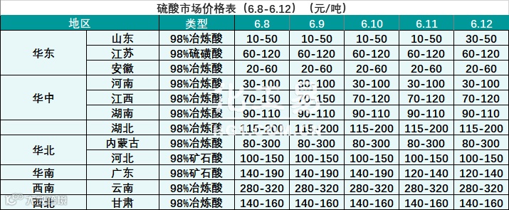 硫酸报价(6.8-6.12)