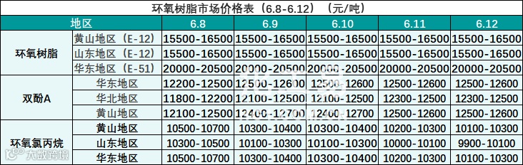 环氧树脂报价(6.8-6.12)