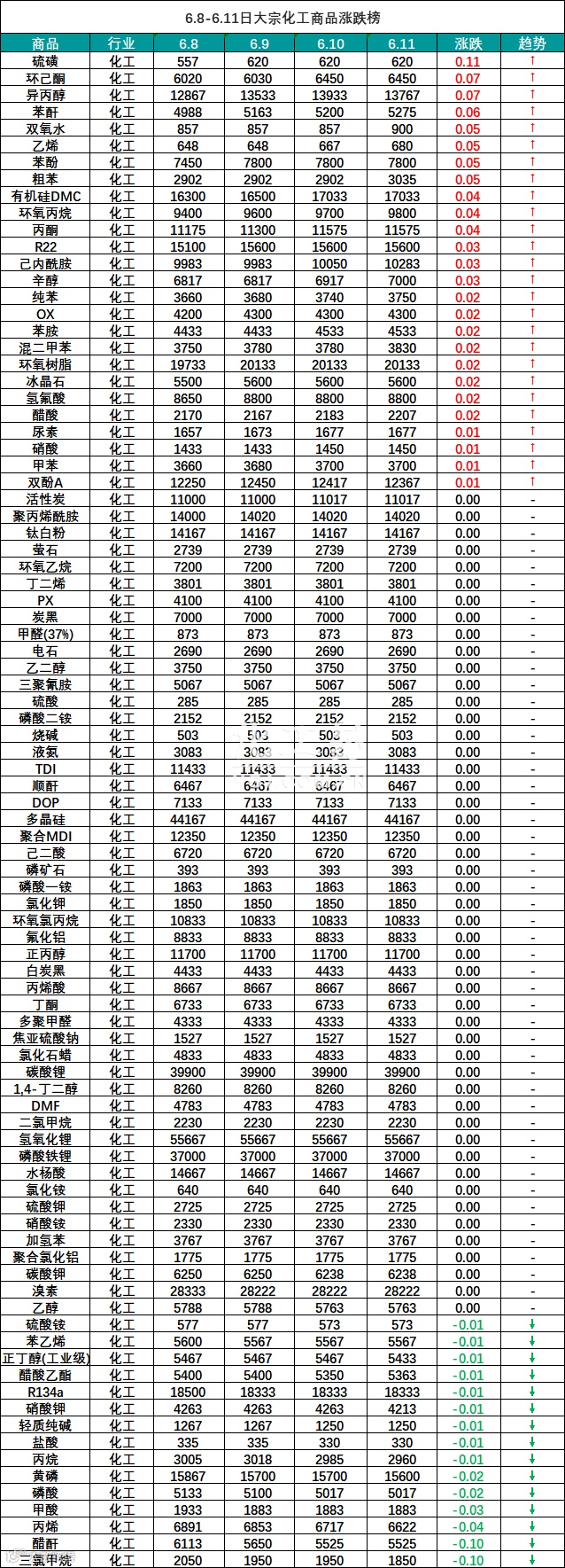 大宗商品报价(6.8-6.11)