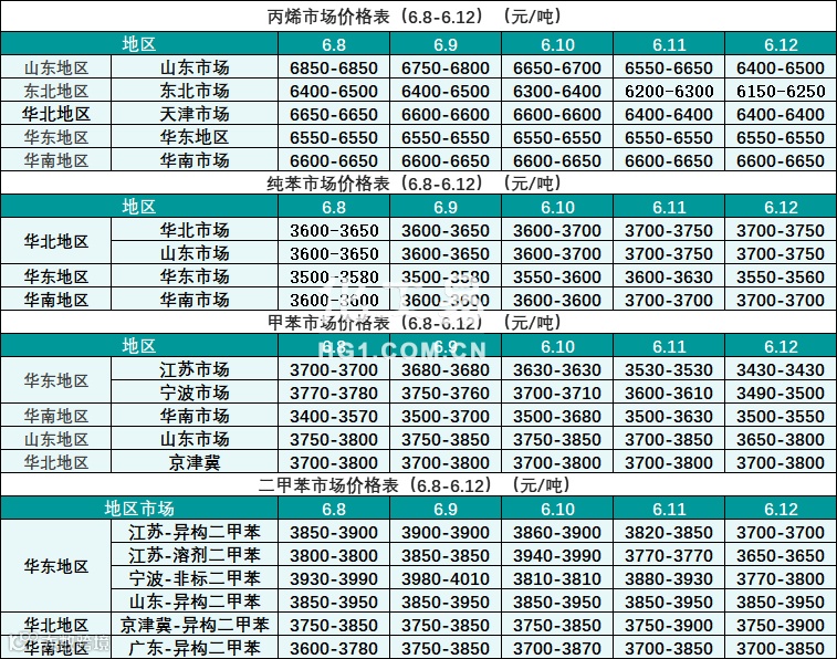 烃类报价(6.8-6.12)