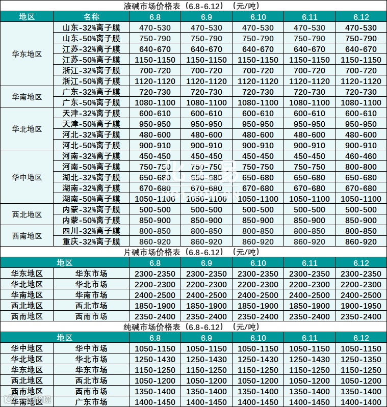 碱类报价(6.8-6.12)