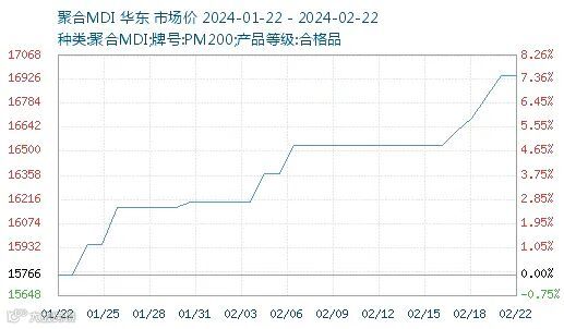 上海方面科思创纯MDI2024年2月下旬执行价上调至21500元/吨。