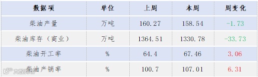5.【供应】当周柴油1364.51万吨,环比下跌0.7%;柴油已连续5周下降,降库140.22万吨。