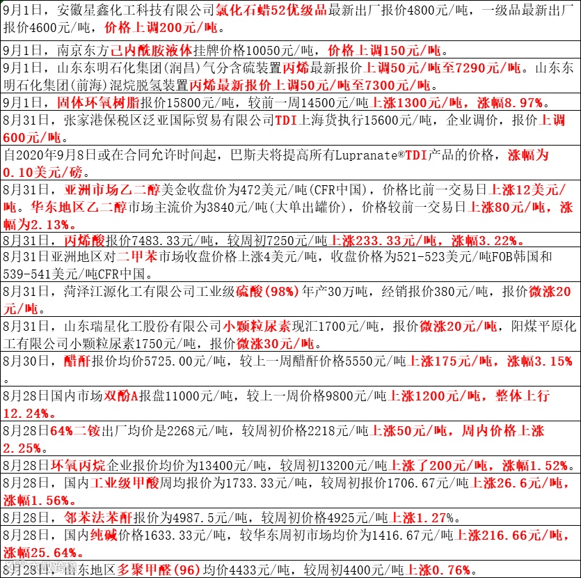 整个八月份国内丙酮市场呈现先跌后涨的态势,临近月底涨势动力充足,进入九月份,丙酮市场延续上行态势,华东地区报盘高达6850元/吨,全国丙酮市场来看均价也在6700元/吨以上。且当前丙酮货源相对集中,工厂多次上调价格,市场信心充足。