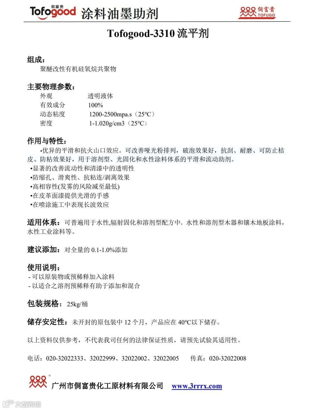 在涂料配方中,流平与表面效果往往决定了成品的第一印象。Tofogood-3310 流平剂是一款聚醚改性有机硅类助剂,性能可等值替代byk-310,在多种体系中可实现稳定替代。