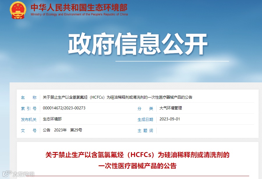 一、自2023年12月1日起,不得生产以HCFCs为硅油稀释剂或清洗剂的一次性医疗器械产品。
