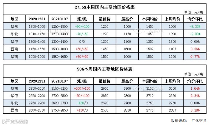 周内主要地区价格表