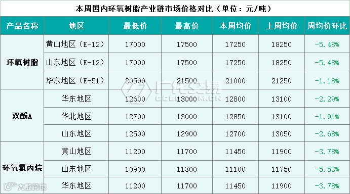 本周国内环氧树脂产业链市场行情回顾