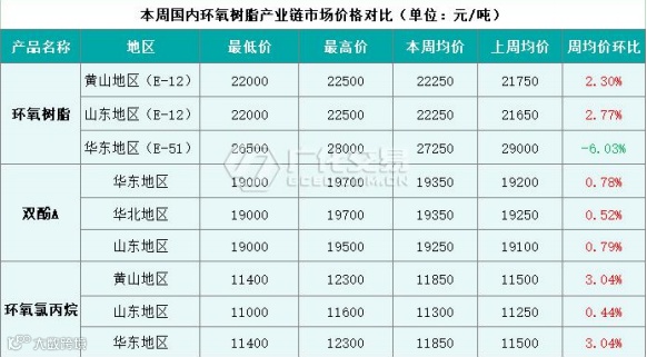 本周国内环氧树脂产业链市场行情回顾