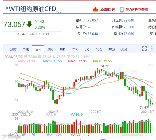 截止发稿,WTI原油报价73.057元/桶(-0.20%);布伦特原油,现报价76.77美元/桶。
