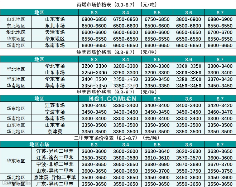 烃类报价(8.3-8.7)