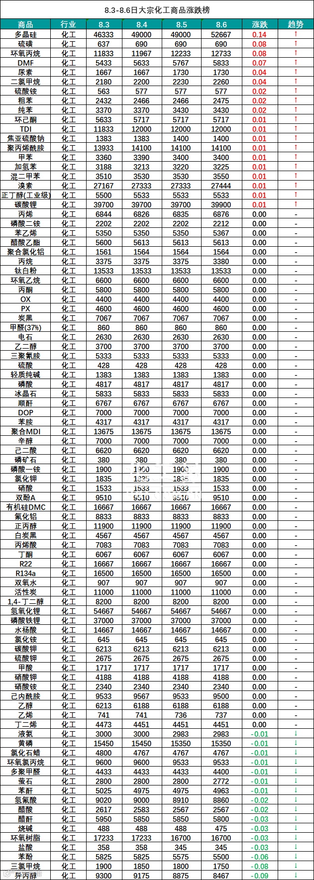 大宗商品报价(8.3-8.6)
