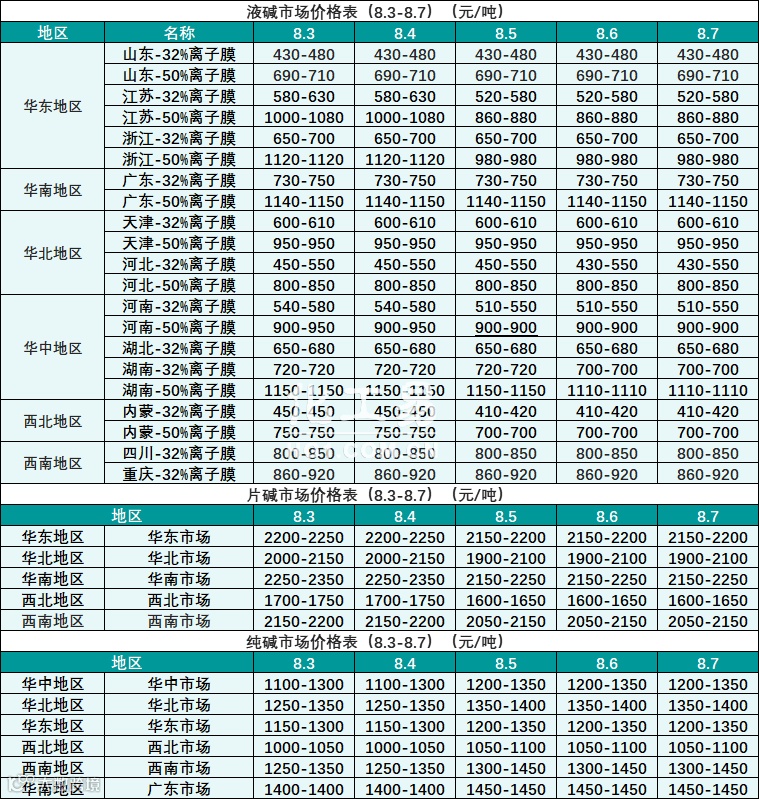 碱类报价(8.3-8.7)