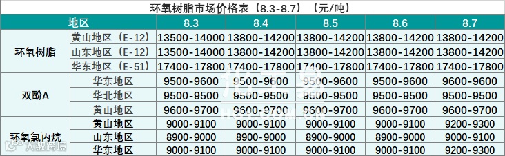 环氧树脂报价(8.3-8.7)