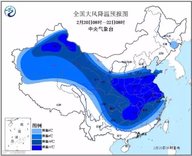 中央气象台发布寒潮蓝色预警和暴雪黄色预警,预计受冷空气东移南下影响,我国将出现今年以来最大范围的雨雪降温天气过程,雨雪将覆盖超一半国土,大部地区气温将下降8到12℃。