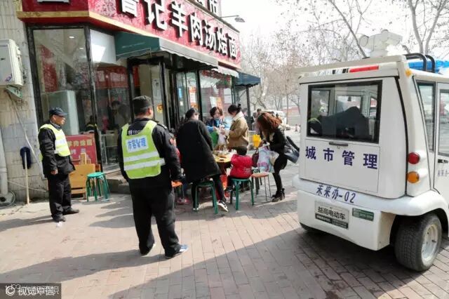 郑州纬五路城管人性化执法,看到一家饭店门前有几个大人带着小孩在外面的桌子上吃饭,并不急于纠正占道经营,而是等市民吃完才和店主一起收摊恢复路面整洁。