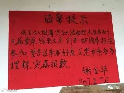 重庆乡村医生谢金华不堪“无事酒”,贴出告示明确拒绝婚丧以外的宴请。网友为他点赞,“总要有人站出来把这层‘纸’捅破,谢金华做得对!”