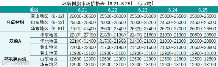 环氧树脂报价(6.21-6.25)