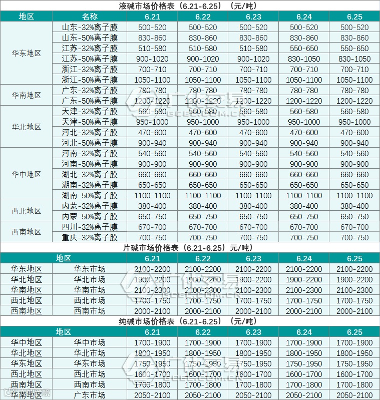 碱类报价(6.21-6.25)