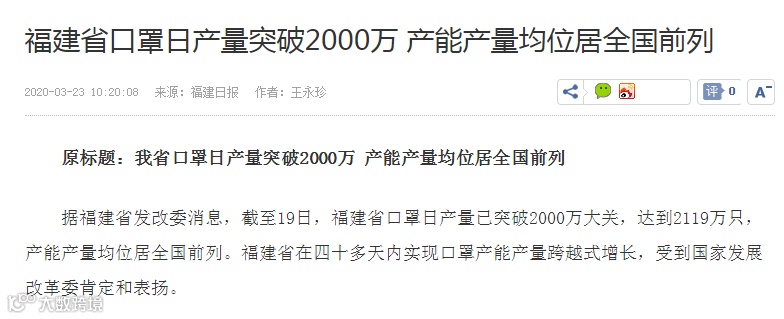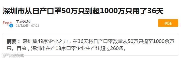 广州在3月初就宣布口罩日产能达到1000万只,深圳3月20日宣布口罩日产量超过1000万只。