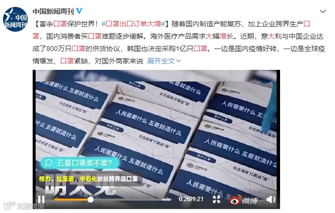 中国的口罩产能提升太迅速了,口罩的产量实在太大了。