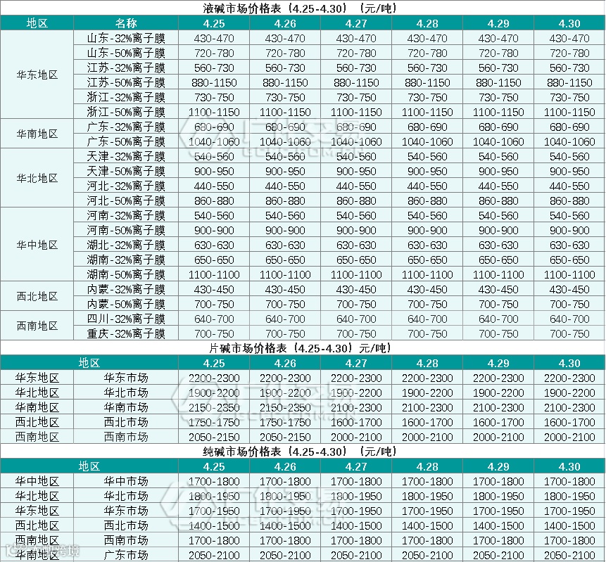 碱类报价(4.25-4.30)