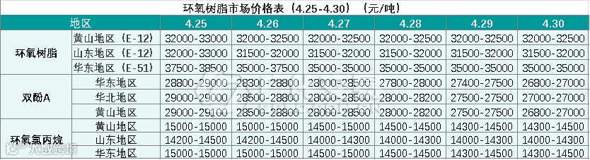 环氧树脂报价(4.25-4.30)