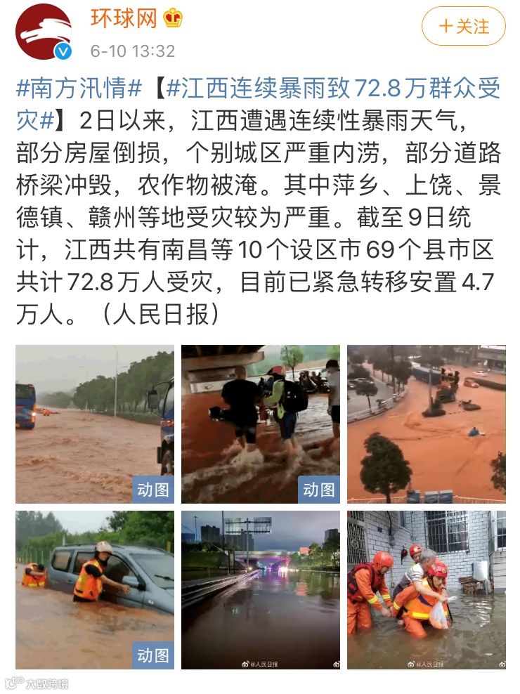 而江西近日下雨跟天漏了一样,导致多地受灾。