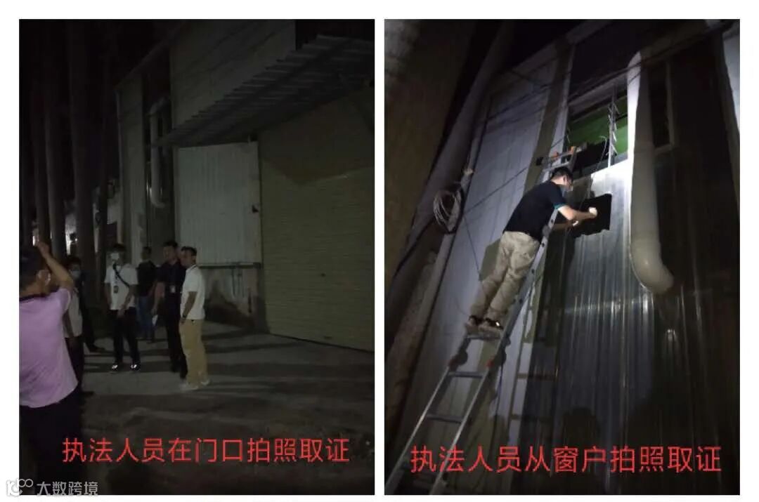当晚9点多,联合执法人员兵分两组、前后包抄位于田心社区的一家非法无牌酸洗加工作坊。执法人员在现场看到,该作坊大门紧锁,从外面听不到任何生产加工的声音。执法人员只好搭起梯子,从大门左侧上方的窗户爬进去。