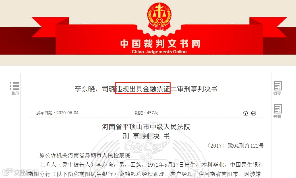 前段时间,中国裁判文书网披露的一份二审刑事判决书,揭开了一起虚构业务交易,骗取银行承兑汇票的大案,经审理查明,宋某等人在多家银行骗取银行承兑汇票,其中民生南阳分行合计2.8亿元、招商郑州分行合计2亿元、广发平顶山分行合计8000万元,上述银行承兑汇票金额总计达5.6亿元。