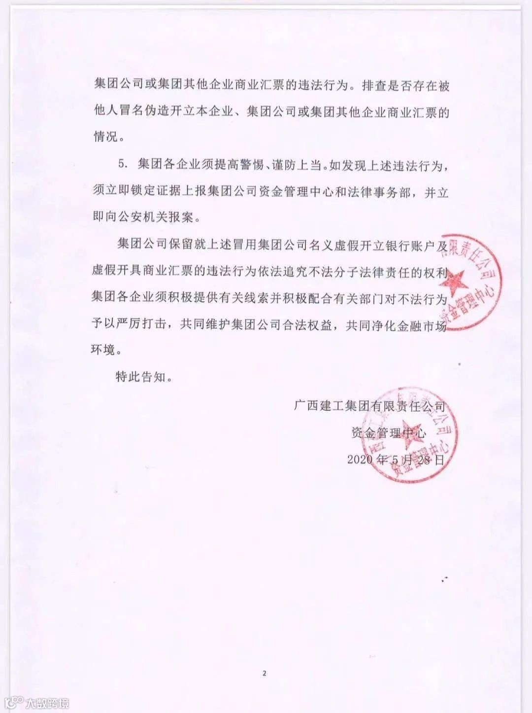 去年,中国建筑第五工程局有限公司、中建六局、中建六局、中交一公局集团有限公司、中铁二局、中交第三公路工程局有限公司、中国水利水电第十二工程局有限公司等均出现过被不法分子假冒其名义开具假承兑汇票的情况,造成了极为不良的影响。