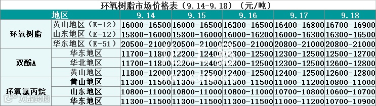 环氧树脂报价(9.14-9.18)