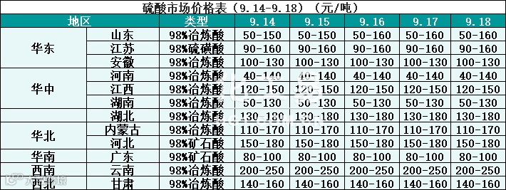 硫酸报价(9.14-9.18)