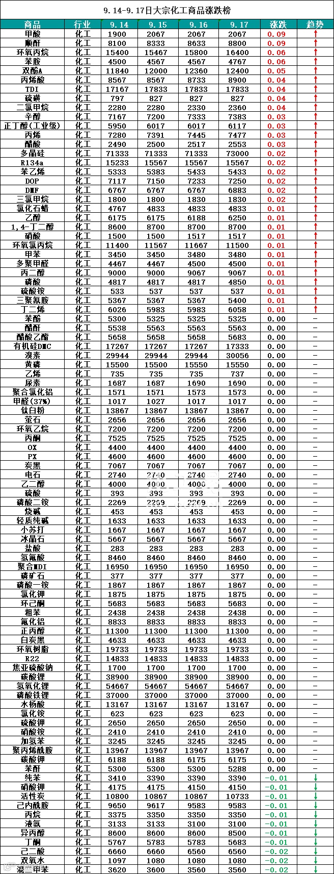 大宗商品报价(9.14-9.17)