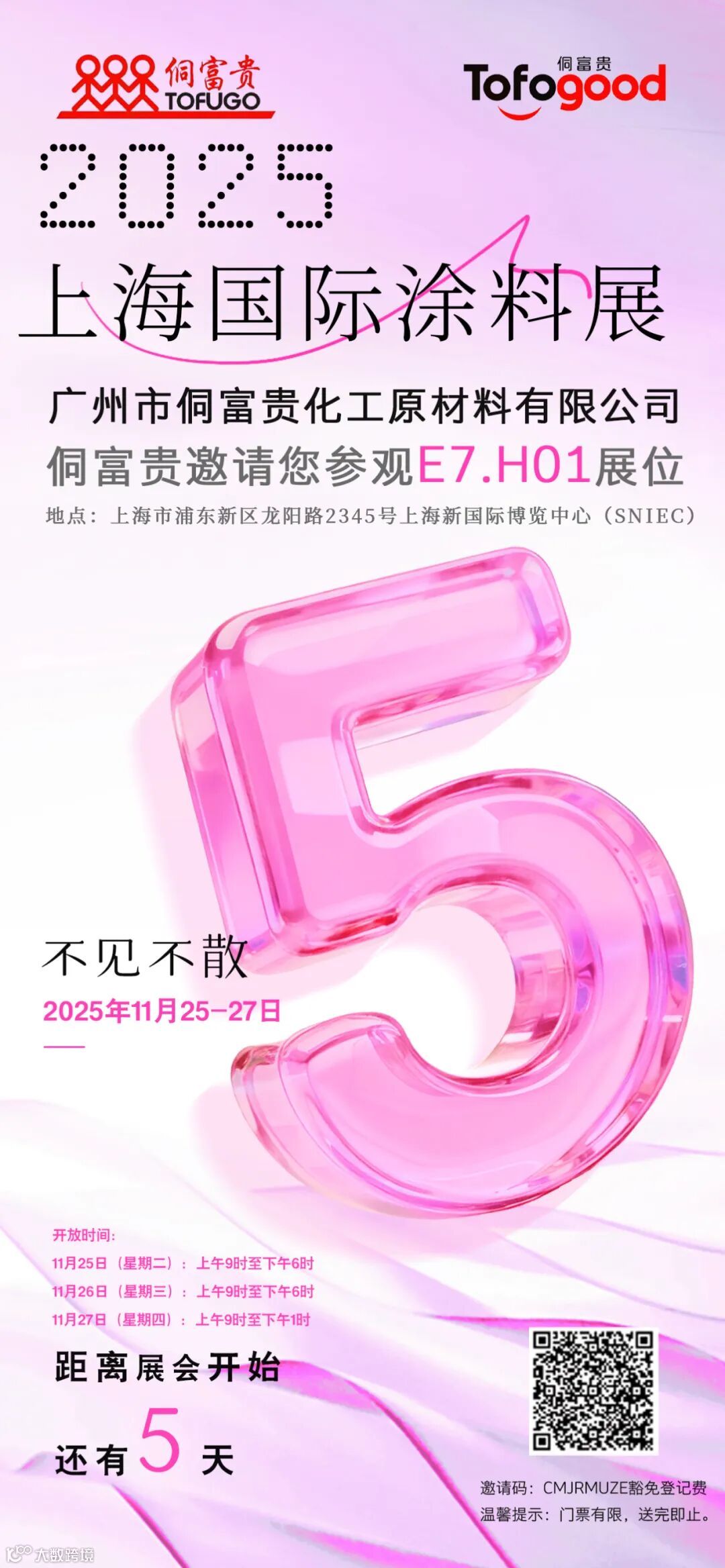 我们在E7.H01侗富贵展台期待与您共同探讨涂料行业发展趋势,分享前沿技术成果与应用方案。让我们相聚上海,共同见证科技与应用的深度融合,共创涂料油墨行业的璀璨未来!