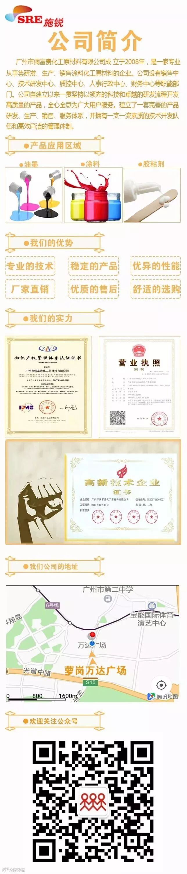胶黏剂、涂料、油墨(增加在金属、薄膜、塑料、玻璃等基材的附着力)