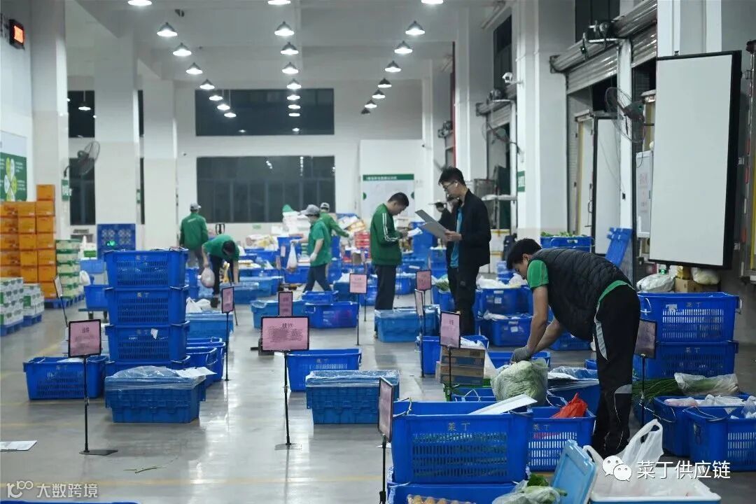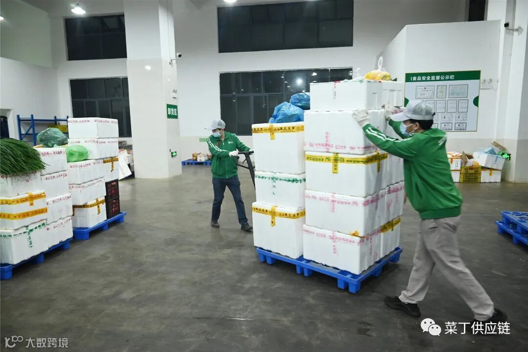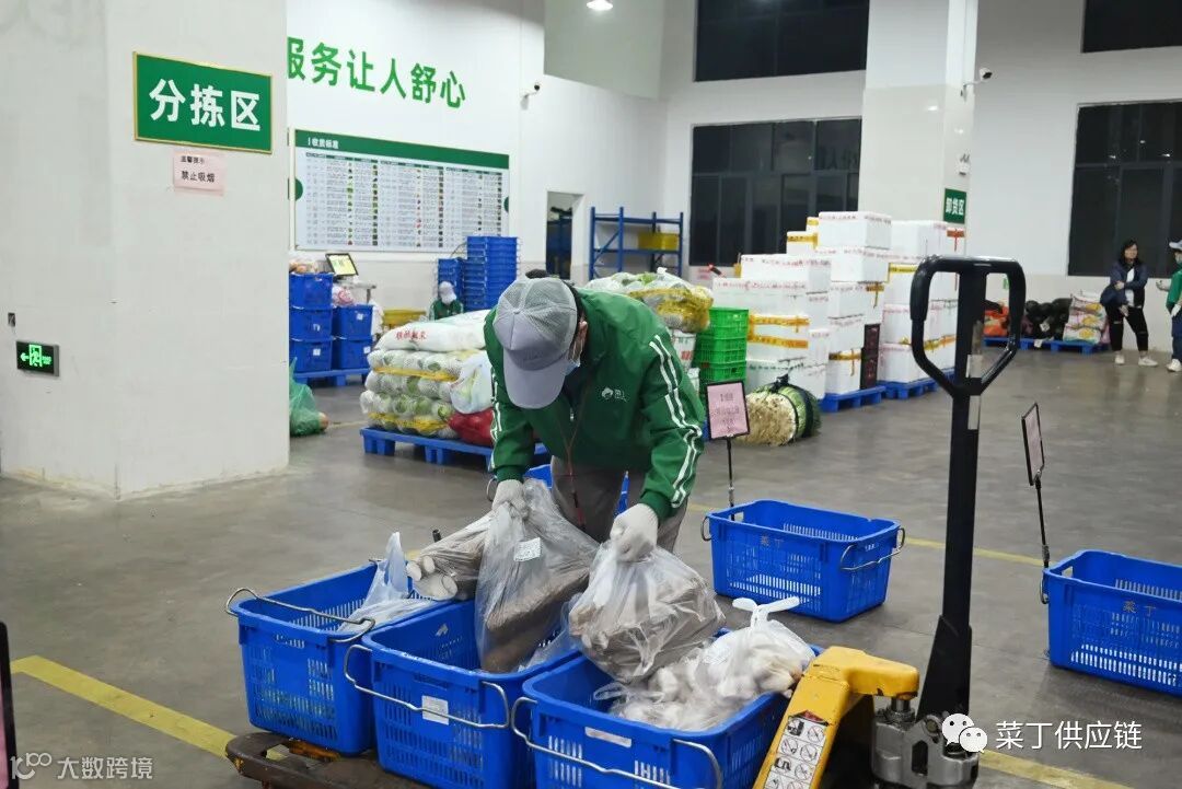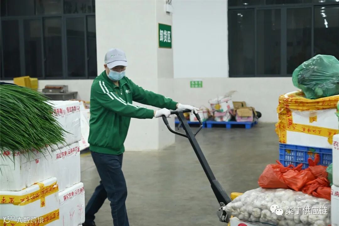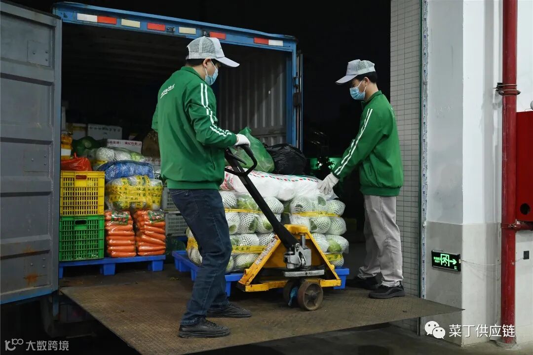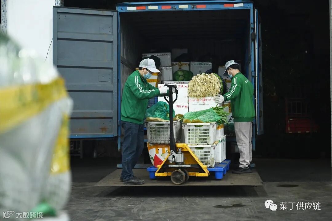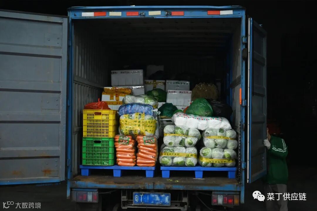一升一降,瓜果蔬菜被有序拉到卸货区