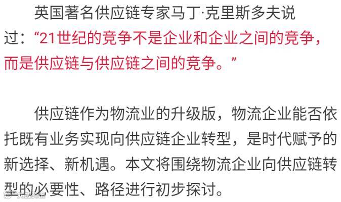 21世纪的竞争不是企业和企业之间的竞争,而是供应链与供应链之间的竞争。——马丁·克里斯多夫