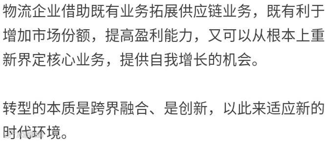 对物流企业而言,转型具有普适性,要么加入供应链,要么打造一个供应链生态,别无选择。