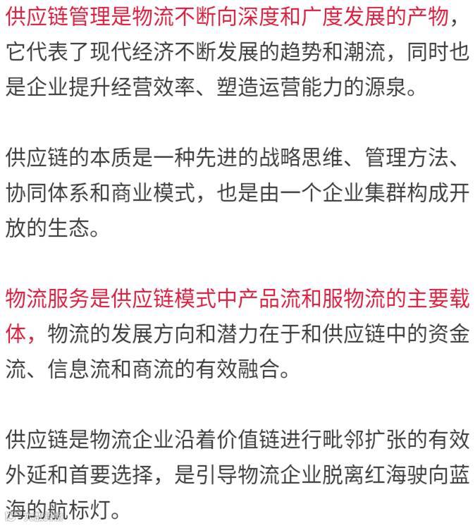 物流企业在向供应链转型过程中,势必激发出新的活力,开启更大范围、更深层次的业务领域,面向未来打造更加开放、共享的经济社会发展新形态。(来源网络,如有侵权,请联系处理)