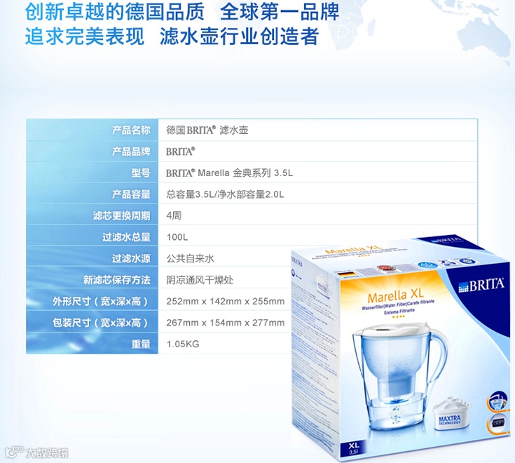 德国Brita原装进口滤水壶,有效减少氯气,水垢和重金属,家用纯净水专家。