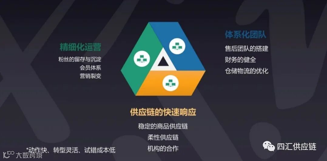 1⃣以主播/团长为中心:主播/团长价值是四汇供应链管理的核心,四汇是根据主播/团长的需求来组织生产;在这种“推式系统”里,存货不足和销售不佳的风险同时存在。
