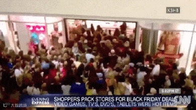 原来啊,美国人一般会在星期四过感恩节,感恩节老美们会全家团聚吃火鸡(那种大大的里面放满蔬果烤制的超级大肉鸡),然后全家半夜或者第二天一大早出发去商店抢购“黑色星期五”打折的货品。
