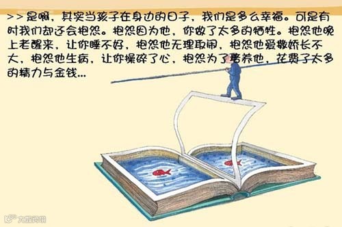 是啊,其实当孩子在身边的日子,我们是多么幸福。可是有时我们却还会抱怨:抱怨因为他,你做了太多的牺牲。
