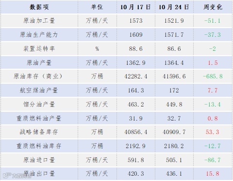 (11)【原油供应】10月31日当周,未来产量的先行指标--美国石油和天然气钻机总数减少4座,至546座。