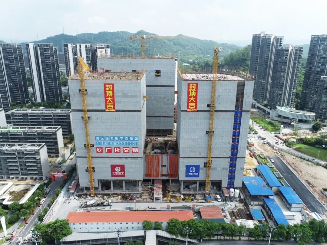 图丨湾区绿色数字交易园区主体结构完成封顶。