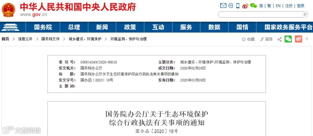 国务院办公厅已发布《关于生态环境保护综合行政执法问题的通知》。稳步推进生态环境保护综合行政执法改革,协调行政执法职能和执法资源配置。有效解决多头多层次的重复执法问题,严格规范公平文明的执法。