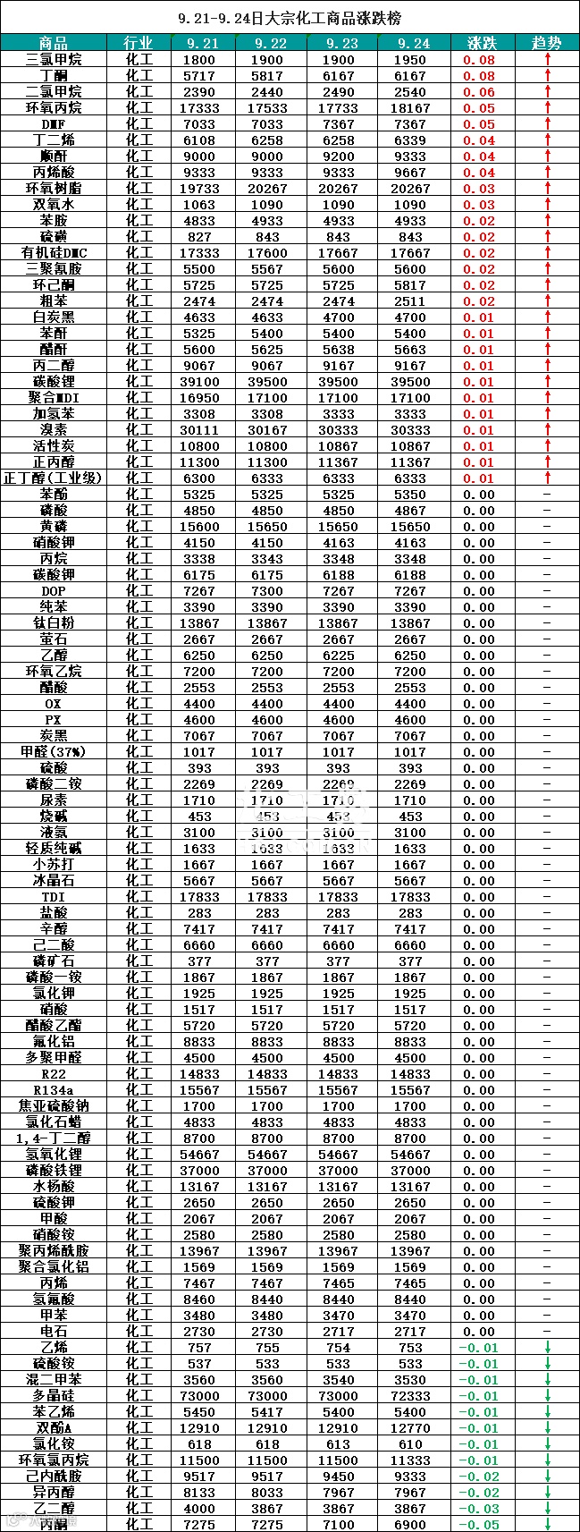 大宗商品报价(9.21-9.24)