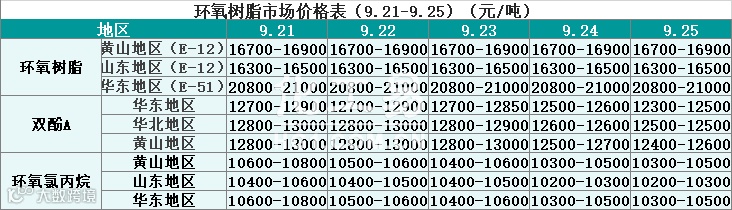环氧树脂报价(9.21-9.25)